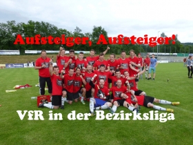 Das Daumendrücken aller VfR-Fans hat Wirkung gezeigt und die Jungs auf dem grünen Rasen haben sich für eine super tolle Saison 2015/16 selbst belohnt durch den Sieg im Relegationsspiel um den Aufstieg in die Bezirksliga Hochrhein. Ein Prickeln lag am Samstag über dem Rheinstadion, Spieler, Funktionäre und VfR-Fans waren nervös und konnten den Anpfiff kaum abwarten. Dann war es endlich soweit. Schiedsrichter Ramon Leisinger und seine zwei Assistenten, David Brombacher und Philip Jourdan schritten zur Tat und gaben die Relegationspartie frei. Mit dem 1:1 aus dem Hinspiel in Laufenburg im Rücken hatte der VfR einen wenn auch kleinen Vorteil. Trainer Werner Gottschling hatte bei der Aufstellung die Qual der Wahl und musste schweren Herzens einige Spieler die eigentlich ebenfalls in die Startelf gehören auf die Bank beordern. Das VfR-Team kam gut ins Spiel. Jakob „Jaki“ Hugenschmidt hatte Pech, als er eine Vorlage von Ahmed Hasnaoui (6. Min.) mit dem Kopf nicht richtig platzieren konnte. Auch Schüsse von Jochen Knoll (7. Min.) und von Moritz Reif, der eine Rückgabe von Tim Siegin (16. Min.) direkt abnahm, verfehlten knapp das Laufenburger Tor. Dann der große Choke. Ein langer Pass über die rechte Seite der Laufenburger überraschte die VfR-Abwehr, so dass das Zuspiel in den Bellinger Strafraum den freistehenden Laufenburger Stockkamp fand, der nur noch zum 0:1 einschieben brauchte. Nach der Halbzeitpause brachte Trainer Werner Gottschling für Jakob Hugenschmidt Maxi Lais ins Spiel. Etwas später kamen dann noch Tim Schillinger für Ahmed Hasnaoui und Dominik Fräulin für Adrian Grozinger. Der „frische Wind“ von der Bank tat dem VfR-Spiel gut und die Mannschaft gab alles um endlich den Ausgleich zu erzielen. Capitano Moritz Reif war es vorbehalten (79. Min.) den Ball nach einem Querpass zum 1:1 in den Laufenburger Maschen „einzulochen“. Viele Zuschauer rechneten nun schon mit einer Verlängerung, da mit dem aktuellen Spielstand und dem Ergebnis aus dem Hinspiel Gleichstand gegeben war. Da machte man aber die Rechnung ohne die VfR-Jungs. Die setzten unter Antreiber Thomas „Rossi“ Roßkopf zum Endspurt an. „Rossi“ selbst hatte in der 81. Minute eine Kopfballchance, die aber nichts einbrachte. Dann kam die große Minute von „Roadrunner“ Tim Siegin. Zuvor von Krämpfen geplagt, schnappte er sich den Ball auf der linken Angriffsseite, ließ den Abwehrspieler „alt“ aussehen und zirkelte den Ball zum vielumjubelten 2:1-Führungstreffer ins lange Eck. Die Gäste hatten nun nichts mehr entgegenzusetzten. Der VfR war aber weiterhin auf Angriff gepolt. Maxi Lais „zündete“ in der 89. Minute „seinen Turbo“ flitzte aufs Laufenburger Tor zu und vollendete zum 3:1 Endstand. Kurz danach pfiff Schiedsrichter Ramon Leisinger die Partie ab und der Jubel über den Aufstieg des VfR in die Bezirksliga kannte keine Grenzen. Spieler, Fans, Funktionäre lagen sich in den Armen und die Aufstiegsparty nahm richtig Fahrt auf. Zu später Stunde wurde die Kabinenparty zum Tollhaus, immer wieder angefeuert von „Feier-Biest“ „Jaki“ Hugenschmidt und dem „Wassermeister“ „Rossi“.