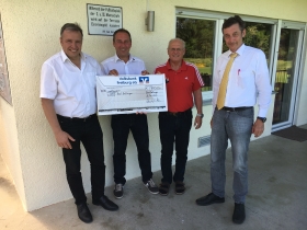 In Bad Bellingen laufen aktuell die Arbeiten zur Verlegung eines Glasfaserkabels. Hierbei soll auch das Vereinsheim des VfR Bad Bellingen angebunden werden. Die Kosten für den Anschluss erhält der VfR Bad Bellingen als Zuschuss der Franz- u. Elisabeth Mary-Stifting. Bürgermeister Dr. Christoph Hoffmann übergab am Mittwoch, 17.05.17 den Vereinsverteter Dr. Rudolf Büchle, Rainer Geugelin und Jürgen Escher einen Scheck über 800,00 Euro.