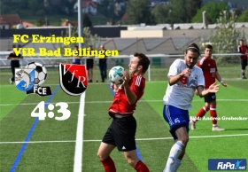Das Duell der Torjäger zwischen Tim Siegin auf Bad Bellinger Seite und Sandro D’Accurso auf Erzinger Seite entschied zwar Tim Siegin mit zwei Toren (D’Accurso 1 Tor) in diesem Spiel für sich, aber leider musste der VfR Bad Bellingen die Punkte im Klettgau lassen. Die Platzherren waren der erwartet starke Gegner, was auch die fünf Siege in Folge nach dem Trainerwechsel in Erzingen schon andeuteten. Der VfR ging zwar durch Tim Siegin in der 13. Minute mit einem Kopfballtor nach Freistoß von Christian Ophoven mit 1:0 in Front und hatte durch weitere gute Torchancen von Siegin die Möglichkeit auf 2:0 oder 3:0 zu erhöhen. Aber die Erzinger waren immer brandgefährlich, hauptsächlich wenn der agile D’Accurso am Ball war. Er war es auch der in der 31. Minute den 1:1 Ausgleich schoss. Drei Minuten später gelang Erzingen nach einem Eckball das 2:1, als ein Erzinger Stürmer im Fünfmeterraum freistehend zum Abschluss kam. In der 42. Minute musste der VfR gar das 3:1 hinnehmen. Aus einer klaren Abseitssituation marschierte ein Erzinger alleine aufs Tor, was vom Schiedsrichter nicht geahndet wurde, obwohl beim Erzinger Kunstrasenplatz mit den unterschiedlichen Farbstreifen die Abseitsstellung klar zu sehen war. Nach dem Wechsel versuchte der VfR das Spiel noch zu drehen. Kai Schillinger gelang bereits in der 47. Minute mit einem herrlichen Schuss aus 20 Meter der 3:2 Anschlusstreffer. Der VfR erspielte sich eine Übergewicht, aber die Platzherren blieben durch Konter immer gefährlich, so in der 74. Minute als ihnen das 4:2 gelang. Die Mannschaft von Trainer Werner Gottschling setzte nun alles auf eine Karte, löste den Abwehrverbund auf und machte Druck auf das Erzinger Tor. Nach schöner Flanke von Yannik Domagala (79.) erzielte Tim Siegin wiederum per Kopfball das 4:3. Die Mannschaft versuchte nochmal alles den Ausgleichstreffer zu erzielen, selbst Torhüter Sven Rodehau, der während des Spiel einige brenzlige Situation klärte, rückte mit in den Strafraum. Die Erzinger brachten aber den Sieg über die Zeit.
