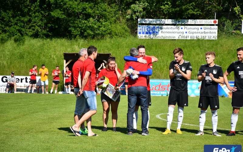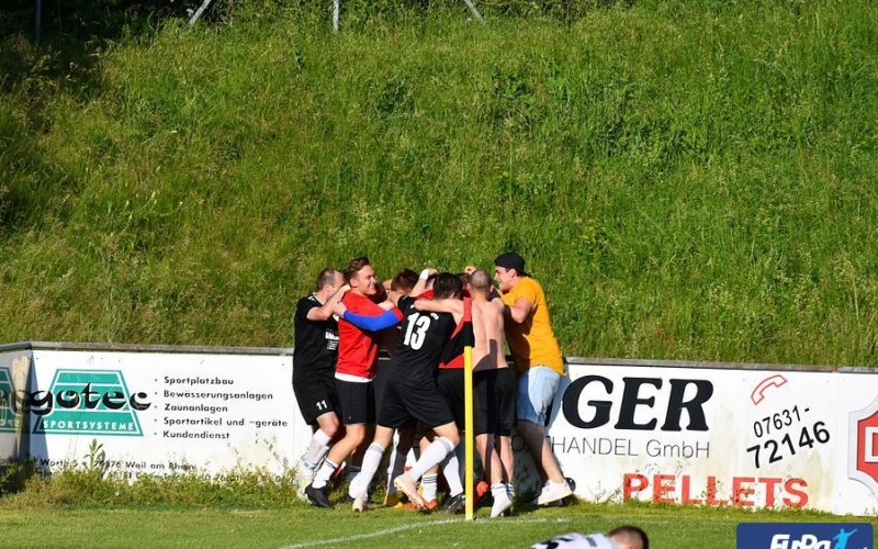 Letzter Spieltag der Landesliga und vieles war noch nicht entschieden. Die Meisterschaft war noch offen und um den 13. Tabellenplatz (Abstiegsplatz) wurde noch gerangelt. Der VfR mittendrin mit dem Endspiel gegen eben den Inhaber des 13. Tabellenplatzes, den FSV Rheinfelden. Trainer Werner Gottschling konnte fast auf den gesamten Kader zurückgreifen, lediglich Capitano Moritz Reif, war Gelb/Rot gesperrt. Der in Frage stehende Yannik Domagala machte die Teilnahme am Spiel möglich und entfleuchte mal kurz bei einer Hochzeit in der Familie. Vor dem Spiel wurden Ines Klünder (Physio), Patrick Büchin und Yannik Domagala beim VfR verabschiedet. Die ersten Torchancen des Spiels verzeichnete der VfR mit einem Schuss von Tim Siegin (11.), den der Gäste-Torhüter hielt und einem Ball (13.) der von der Rheinfeldener Abwehr noch vor der Torlinie geklärt wurde. Die Gäste hatten leichte Vorteile bei den Spielanteilen und machten in der 18. Minute mit einem Schuss auf sich aufmerksam der von VfR-Keeper Sven Rodehau glänzend gehalten wurde. Mike Muser versuchte sich mit einem Distanzschuss (23.), der gepasst hätte, aber vom Rheinfeldener Torhüter über die Latte gelenkt wurde. Glück hatte der VfR in der 25. Minute als ein Schuss der an die Torlatte krachte. Nach der Pause wurde der VfR agiler und hatte nun mehr Spielanteile. Die große Chance in Führung zu gehen (51.) verpasste Yannik Domagala, der einen an Tim Siegin verursachten Foulelfmeter an den Pfosten setzte. Der Gefoulte feuerte in der 68. Minute einem Schuss ab, fand aber im glänzend haltenden Gäste-Goalie wiederum seinen Meister. Das Geschehen in der zweiten Hälfte wurde in der 70. Minute auf den Kopf gestellt. Einmal kam der Tabellendreizehnte durch und erzielte prompt den Führungstreffer. Im weiteren Verlauf sickerte durch, dass der FC Freiburg-St. Georgen in Führung lag und der VfR sich nun auf Grund des aktuellen Spielstandes in der Livetabelle auf dem Abstiegsplatz wiederfand. Der FSV kassierte in der 81. Minute eine Rote Karte und musste nun zu zehnt weiterspielen. Der VfR drückte nun vehement, aber ein Tor wollte einfach nicht gelingen. Trainer Werner Gottschling wechselte in der 88. Minute Niklas Zimmermann für Lucas Würmlin ein und hatte damit ein glückliches Händchen bewiesen. Denn mit dem ersten Ballkontakt wuchtete „Niki“ eine Flanke mit dem Kopf zum 1:1 in das Rheinfeldener Gehäuse. Der Jubel auf VfR-Seite war groß, denn dadurch ließ man Rheinfelden in der Tabelle wieder hinter sich. Als dann der ebenfalls in der 78. Minute für Maxi Lais eingewechselte Tim Weber wiederum mit einem Kopfballtor (90 +2) noch den Siegtreffer erzielte, gab es kein Halten. Der VfR schloss seine erste Landesliga-Saison mit 41 Punkten auf dem 10. Tabellenplatz ab und war während aller Spieltage nie auf einem Abstiegsplatz zu finden. Eine tadellose Spielleitung kann dem Schiedsrichtergespann mit dem leitenden Schiedsrichter Jonas Brombacher und den Assistenten Timo Bugglin und Marco Brendlin bescheinigt werden. Der Frust der Gäste entlud sich zum Spiel-Ende noch mit einer Gelb/Roten Karte (90. + 4) und einer Roten Karte, die sogar nach dem Schlusspfiff noch gezeigt wurde.