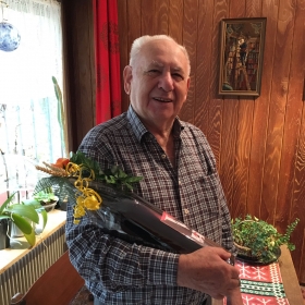 Im Hause Schropp stand ein großes Fest an. Hermann Schropp feierte seinen 80. Geburtstag. Vorsitzender Dr. Rudolf Büchle gratulierte dem Jubilar, überbrachte die Glückwünsche des Vereins und überreichte ein Geschenk. Der Architekt des VfR war an allen Baumaßnahmen des Vereins maßgeblich beteiligt. Beim Clubheimbau (Anfang der 70er Jahre), beim Clubheimanbau (1988), bei der Sanierung und Vergrößerung des Hartplatzes (Jahr 2000) und auch beim Bau des Kunstrasenplatzes (2013) wurde er zu Rate gezogen. Darüber hinaus ist er seit Jahren Beisitzer im Förderverein „VfR Bad Bellingen“ e.V., Platzpate beim Kunstrasenplatz und in dieser Saison schon etliche Male Ballspender bei den Heimspielen des VfR. Als begeisterter VfR-Fan lässt er sich kein Heimspiel des VfR entgehen. Ab und an nimmt der sogar die derzeit weiten Fahrten zu den Auswärtsspielen in Kauf. Wir freuen uns, so ein Mitglied in den VfR-Reihen zu haben und wünschen ihm weiterhin viel Spaß bei den Velotouren und den Spielen beim VfR.