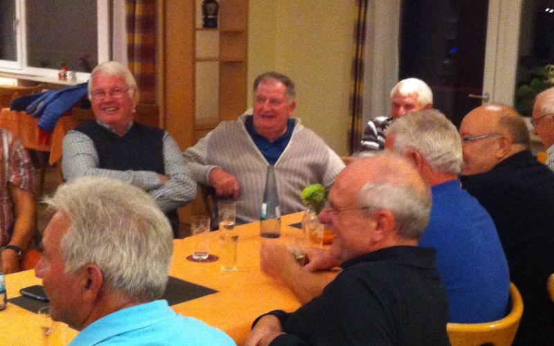 Am Freitag, 02.10.15 trafen sich ca. 25 ehemalige Kicker des VfR zum obligatorischen vierteljährlichen Stammtisch im Topinambur, der Sportgaststätte des VfR Bad Bellingen. Zunächst ließ man sich mit Speis und Trank vom neuen Pächterehepaar Stephan und Cornelia Mark und ihrem Team verwöhnen. Nachdem der Hunger gestillt und der erste Durst gelöscht war, begrüßte der Kapitän der VfR-Oldies, Helmut Hössle, die anwesenden „Altstars“. Helmut Hössle verkündete, dass dies nun der 60 Stammtisch ist, der seit Einführung dieses Brauchs abgehalten wird. Helmut Hössle übernahm die Nachfolge des im Jahre 1999 verstorbenen Oswald Meyer, der die Ausflüge der ehemaligen Fußballer des VfR ins Leben rief. Zusätzlich zu dem alljährlichen Ausflug führte Helmut Hössle die vierteljährlichen Stammtische ein. Alle Oldies sind mit Leib und Seele dabei, wenn die Termine für die Stammtische und den jährlichen Ausflug anstehen. Meistens treffen sich 25 – 30 Spieler aus den 50er – 70er Jahre und freuen sich immer über einen tollen Event bei dem man sich über das frühere und auch heutige Geschehen auf den Fußballplätzen austauscht. Natürlich wird außerdem dem Gesang der alten Fußballerlieder gefrönt. Ein Brauch der bei den heutigen Kickern kaum mehr gepflegt wird. Wir freuen uns, dass wir mit den beiden Westermänner (Rolf und Wilfried) zwei „Jungs“ in der „Stammelf“ haben, die nicht nur gute Fußballer waren, sondern auch über „geölte“ Stimmen verfügen und jedes „Lumpenlied“ kennen. So auch an diesem Abend. Wilfried „Tilli“ Westermann hatte die ganze Woche die „Krätze“ im Hals, aber am Freitagabend war sie wie weggeblasen. „Tilli“ lief zu großer Form auf und gab auch als Solopart das Lied „ Unser Pfarrer hat eine wunderschöne ……!“ zum Besten. Wie es bei diesem Lied der Brauch ist, mussten alle ihre Köpfe nach unten auf den Tisch legen und den Referee mitbrummeln. Auch der „Pavarotti“ aus Friedlingen, Rolf Westermann war gut drauf und schmetterte u.a. auch das Lied vom „Italiener“, das immer ein Highlight ist. Der Bajazzo, das Lieblingslied vom früheren Kopfball-Ungeheuer, Kieler-Karle durfte auch nicht fehlen. Nachdem die ersten zu später Stunde den Heimweg antraten, rückten die übrigen ehrgeizigen Stammspieler zusammen und legten nochmal richtig los. Die ganz Eisernen zog es zum Abschluss noch an die Theke, bevor man den Heimweg in Angriff nahm.